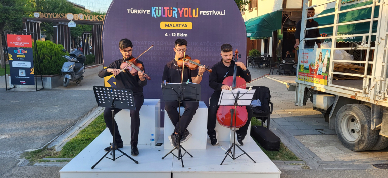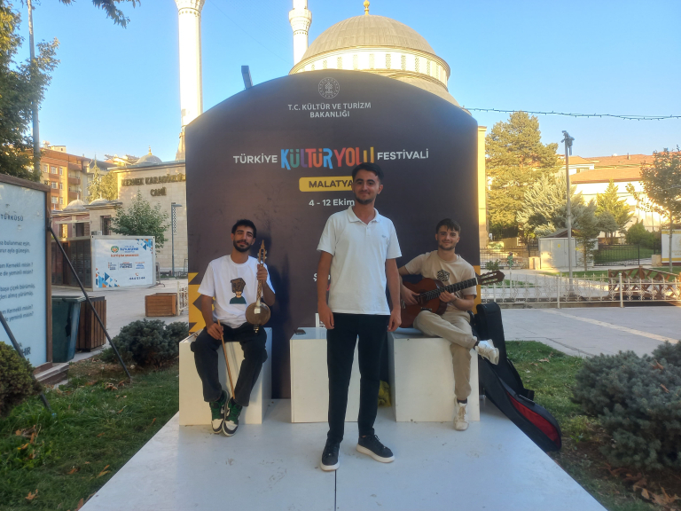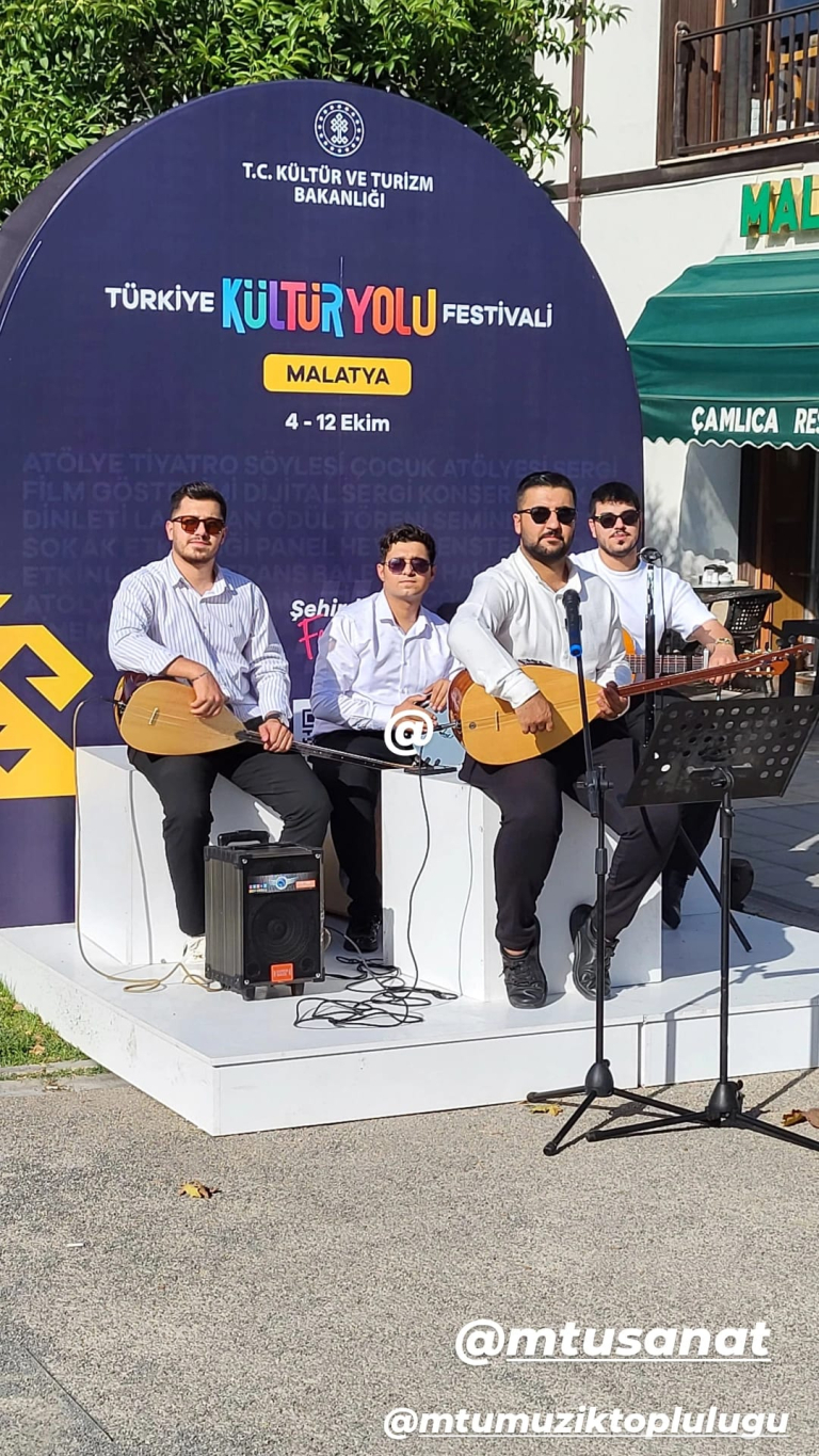 As part of the Turkey Culture Route Festival organized by the Ministry of Culture and Tourism of the Republic of Turkey, students from the Music Department of the Faculty of Arts, Design, and Architecture at Malatya Turgut Özal University took the stage at the “Music in the Streets” event, adding color to the festival.