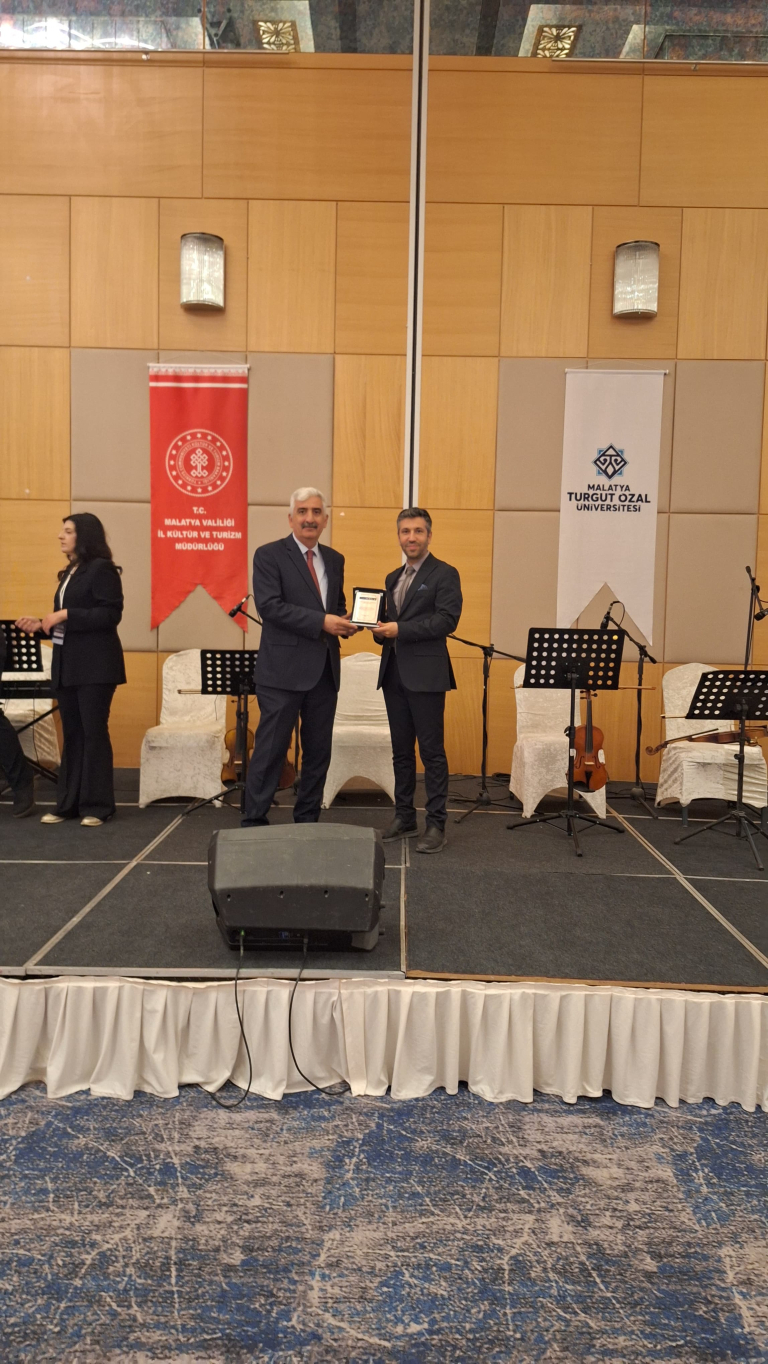 Dinleti sonunda katkılarından dolayı Rektör Yardımcısı Prof. Dr. İlhan Erdem tarafından Öğr. Gör. Harun Barış’a plaket takdim edildi.