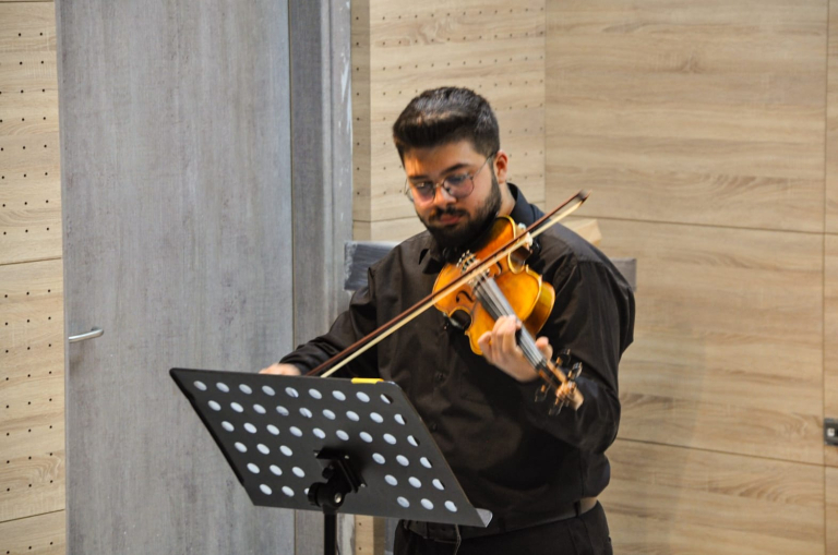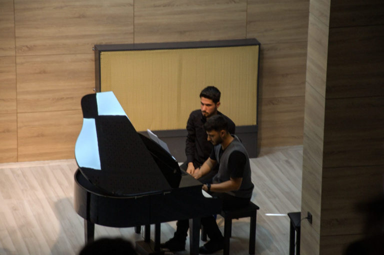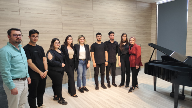 Sanat Yönetmenliğini Dr. Öğr. Üyesi Olcay Korkmaz’ın Oda Müziği ve Piyano dersi “Yıl Sonu Konseri” organize edilen öğrencileri tarafından verilen konser, Hulusi Onat (keman) ve Ayşe Güven’in (piyano) seslendirdiği ‘Bülbülüm Altın Kafeste’ eseriyle başladı. Ramazan Kaya ve Cemil Yapıcı’nın birlikte çaldığı ‘İspanyol Dansı’ ile devam etti. Miray Yağlıcı (soprano) ve Ayşe Güven (piyano), Scarlatti’nin ‘Se Florindo e Fedele’ adlı eserini başarıyla seslendirdi. Ardından Baran Sarıgül (keman) ve Ramazan Kaya’nın (piyano) ‘Iğdır’ın Al Alması’ performansı dinleyicilere duygusal anlar yaşattı. Ramazan Kaya, M. Sun’a ait ‘Yurt Renkleri Horonumsu’ parçasını solo piyano ile çaldıktan sonra, Eyüp Çetinkaya (keman) ve Selin Hasar (piyano), Mozart’ın (Mi Minör K.304) numaralı sonatını seslendirdi. Etkinliğin son bölümünde Cemil Yapıcı ve Aynur Şahin, Schubert’in ‘Alabalık’ eserini birlikte icra etti. Finalde, Baran Sarıgül (keman) ve Ramazan Kaya (piyano), O. Rieding’in “Concertino in Hungarian Style” adlı eseriyle konseri coşkulu bir şekilde sonlandırdı.