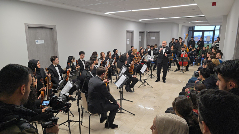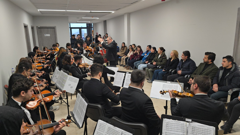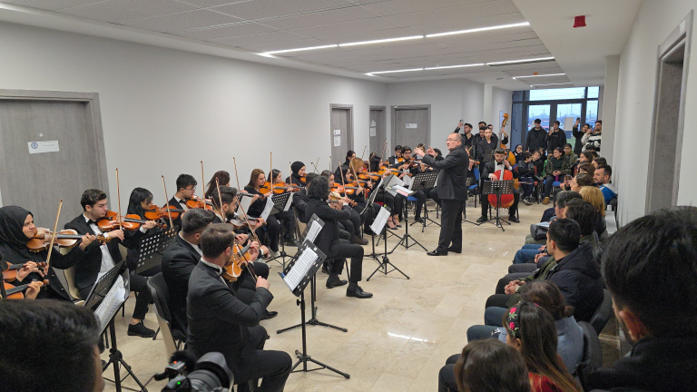 Fakültemiz Müzik Bölümü Yaylı Çalgılar Orkestrası tarafından konser düzenlendi. Fakülte Dekanı Prof. Dr. Ersan Çiftci’nin orkestra şefi olarak yer aldığı Konser, fakülte öğrencileri ve öğretim üyelerinin yanı sıra, Malatya'daki Öğretmenler Ortaokulu'ndan bir grup öğrencinin katılımıyla daha da anlam kazandı. Ayrıca, Malatya Emniyet Müdürlüğü Çocuk Şube Müdürü Güleser Yıldız ve Polis memurları katıldı. Gençlerin ve müzikseverlerin yoğun ilgisiyle salonda coşkulu bir atmosfer hakimdi.