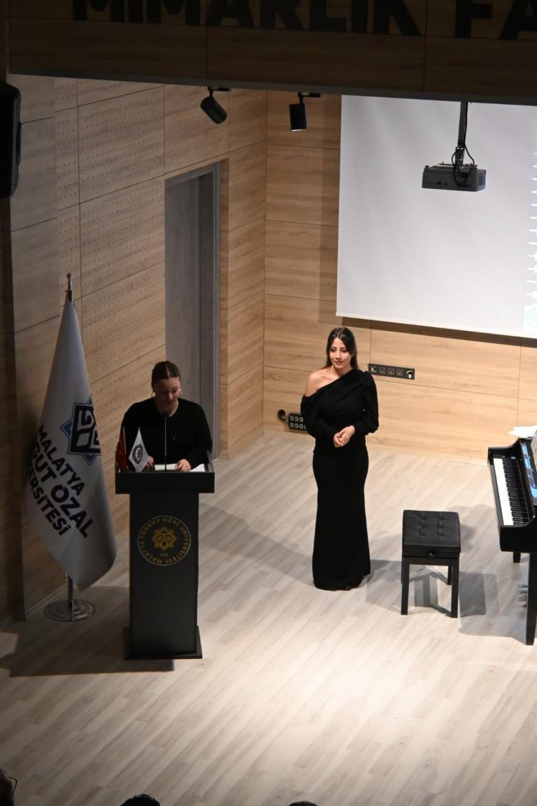 Müzik Bölümü tarafından düzenlenen Piyano Dinletisi, 24 Aralık Çarşamba günü Kenan Işık Amfisi’nde gerçekleştirildi. Sanat yönetmenliğini Doç. Dr. Ferdi Karaönçel’in üstlendiği dinletide, Müzik Bölümü 4. Sınıf öğrencisi piyanist Ayşe Güven sahne aldı. Dinletiye; Sanat, Tasarım ve Mimarlık Fakültesi Dekanı Prof. Dr. Ersan Çiftci, dekan yardımcıları Doç. Dr. Ebru Doğan ve Doç. Dr. Ferdi Karaönçel, fakülte sekreteri ve aynı zamanda Müzik Bölümü öğretim elemanı Öğr. Gör. Harun Barış ile akademik ve idari personel ile öğrenciler katıldı.