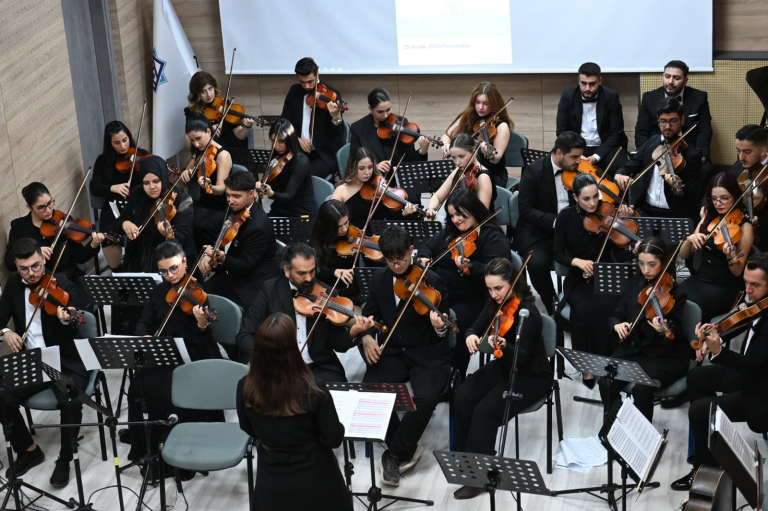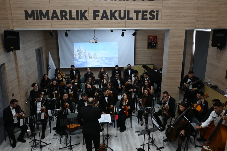Müzik Bölümü tarafından düzenlenen Yaylı Çalgılar Orkestrası “Yeni Yıl Konseri”, 25 Aralık Perşembe günü saat 14.00’te Kenan Işık Amfisi’nde gerçekleştirildi. Şefliğini Fakülte Dekanı Prof. Dr. Ersan Çiftci’nin üstlendiği konser, akademik ve sanatsal içeriğiyle izleyicilere nitelikli bir müzik deneyimi sundu. Programda, klasik müzikten film müziklerine ve Türk müziğine uzanan geniş bir repertuvara yer verildi.
