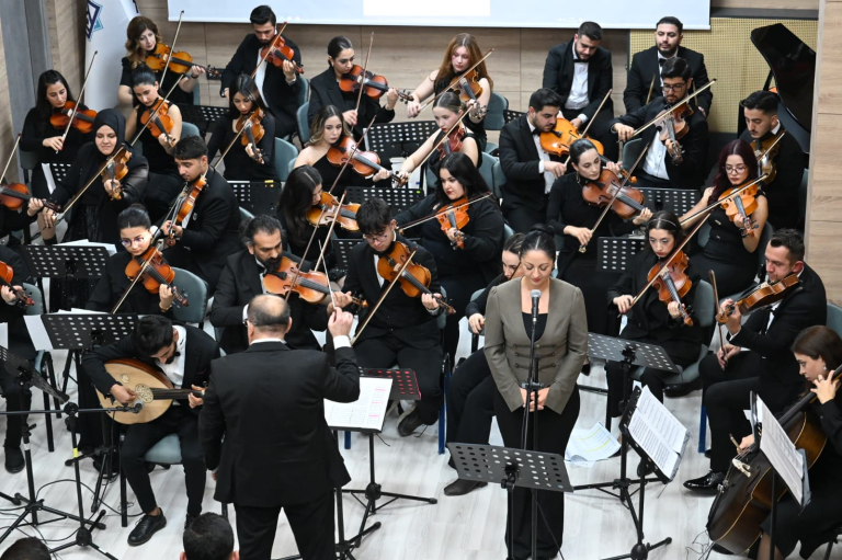 Yaylı Çalgılar Orkestrası’nda Müzik Bölümü öğretim elemanları ve öğrencileri birlikte sahne alırken, farklı enstrüman gruplarının uyumlu performansı konserin dikkat çeken unsurları arasında yer aldı. Konser, öğrencilerin dönem boyunca edindikleri teknik ve sanatsal birikimi sahne deneyimiyle pekiştirmelerine imkân sundu.